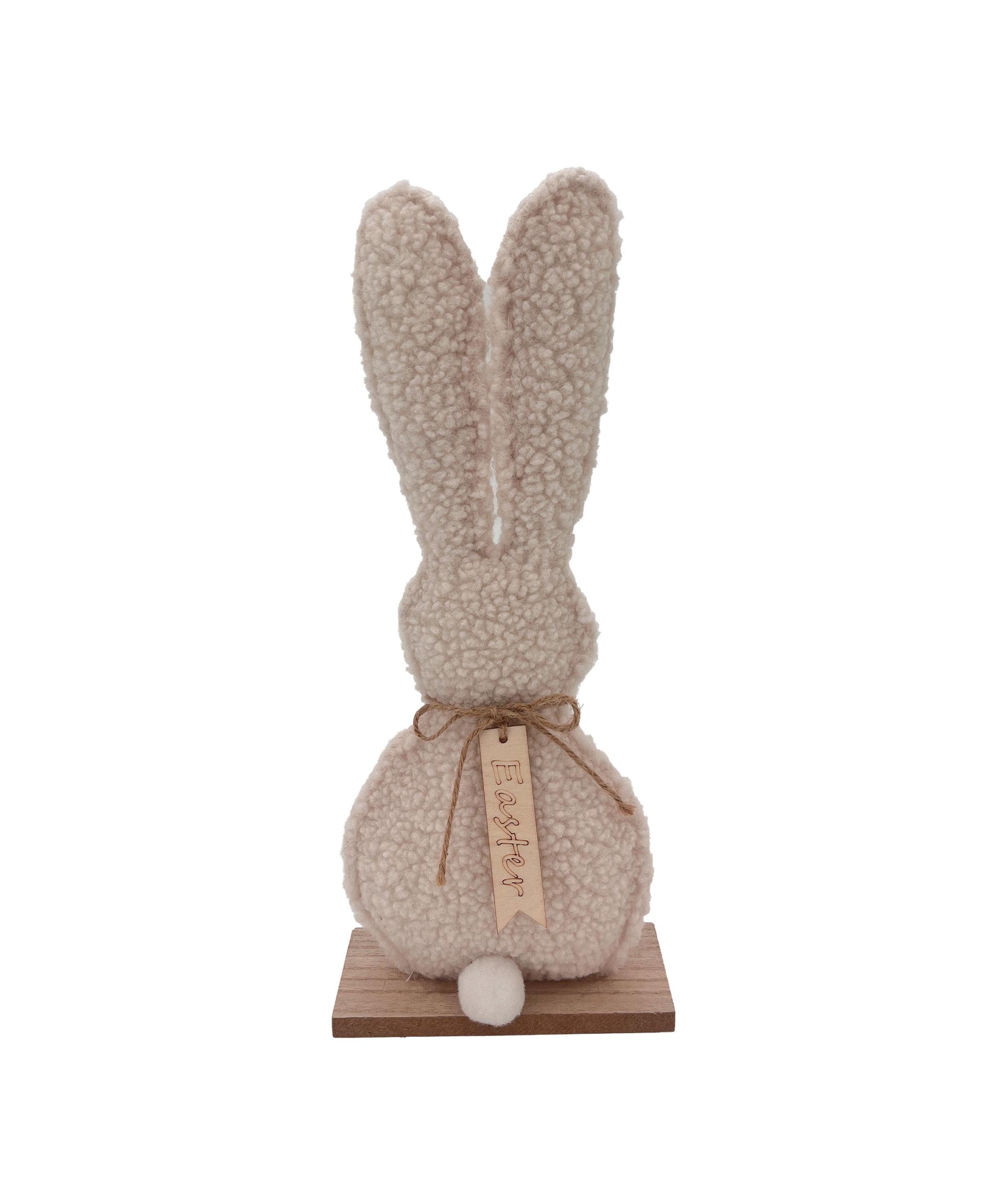 Jeśli nie masz czasu na układanie skomplikowanych stroików, postaw na jeden mocniejszy akcent. Ten zając z KiK to dekoracja, która praktycznie „robi się sama”. Jest wysoki, wyrazisty i wykończony modną tkaniną w stylu bouclé, która nadaje mu rustykalny charakter. Drewniana stopka i jutowa wstążka z zawieszką wprowadzają naturalny akcent, który świetnie komponuje się z jasnymi tekstyliami, świecami czy gałązkami w wazonie. To świetna opcja last minute – wygląda jak element przemyślanej aranżacji, a kosztuje tylko 19 zł.